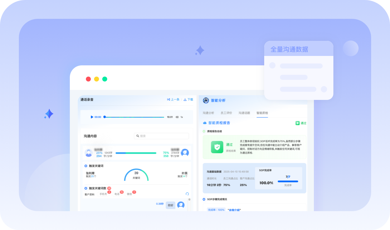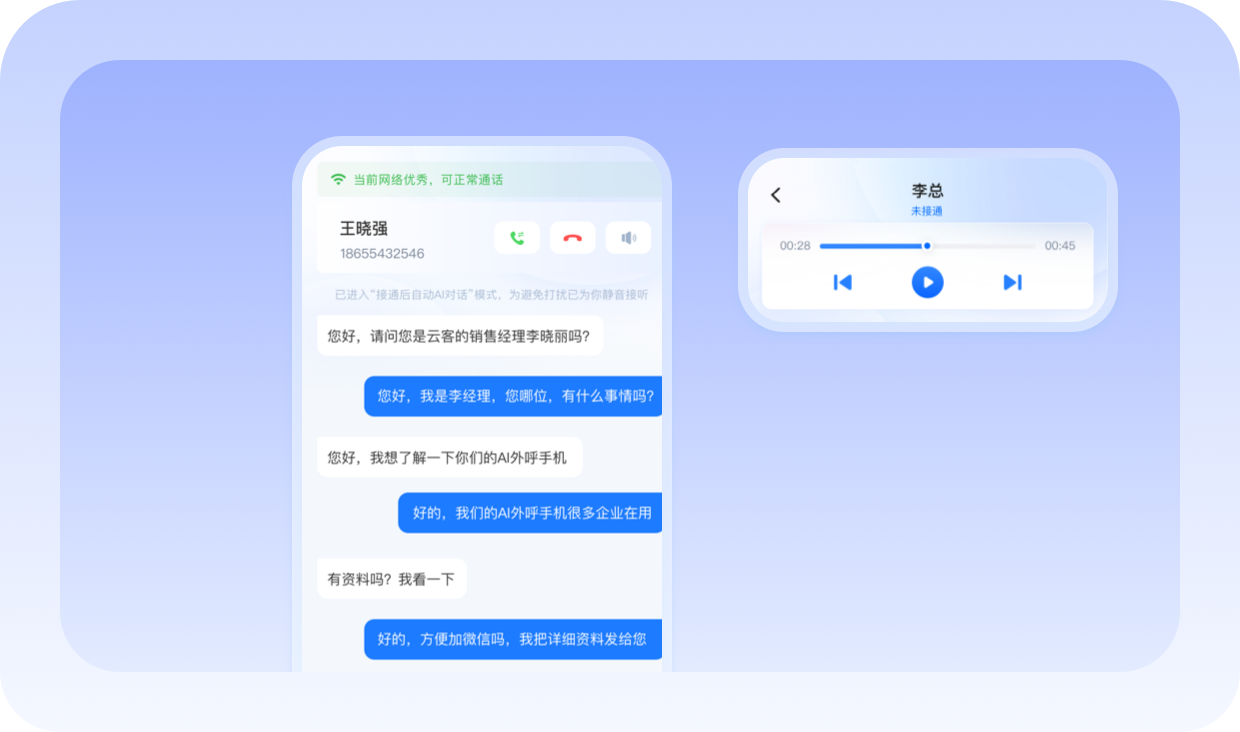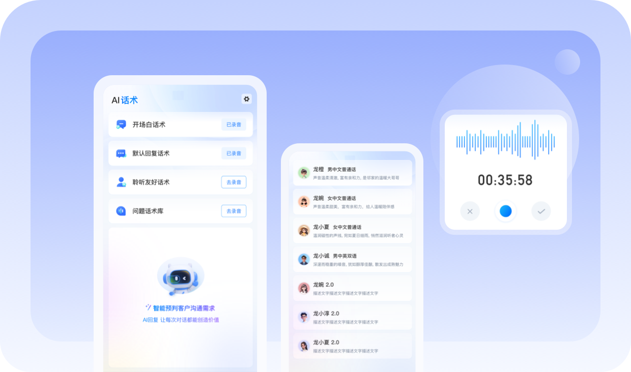 支持客户智能打断续答则能精准识别客户打断意图,暂停当前话术播放并聚焦客户表述,快速回应后还能结合上下文继续未完成内容,让沟通连贯自然,如同面对面交流。