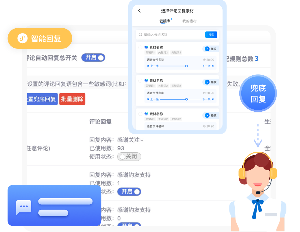 可设置兜底回复,当匹配不到关键词时,直接调用兜底回复内容