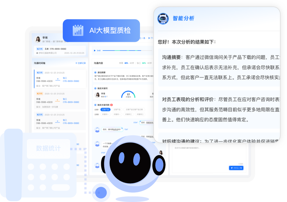 通过智能质检,获取客户对产品以及服务的反馈,并自动生成智能分析报告