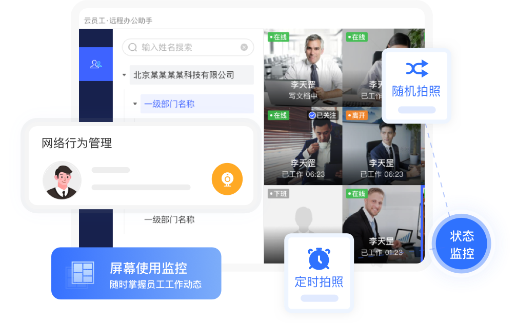 支持摄像头定时拍照+随机拍照,管理者可实时了解员工工作状态